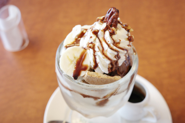 この写真は分かり辛いけど、かなりボリューミーなパフェ。甘い。うまい。安い(それなりに)。